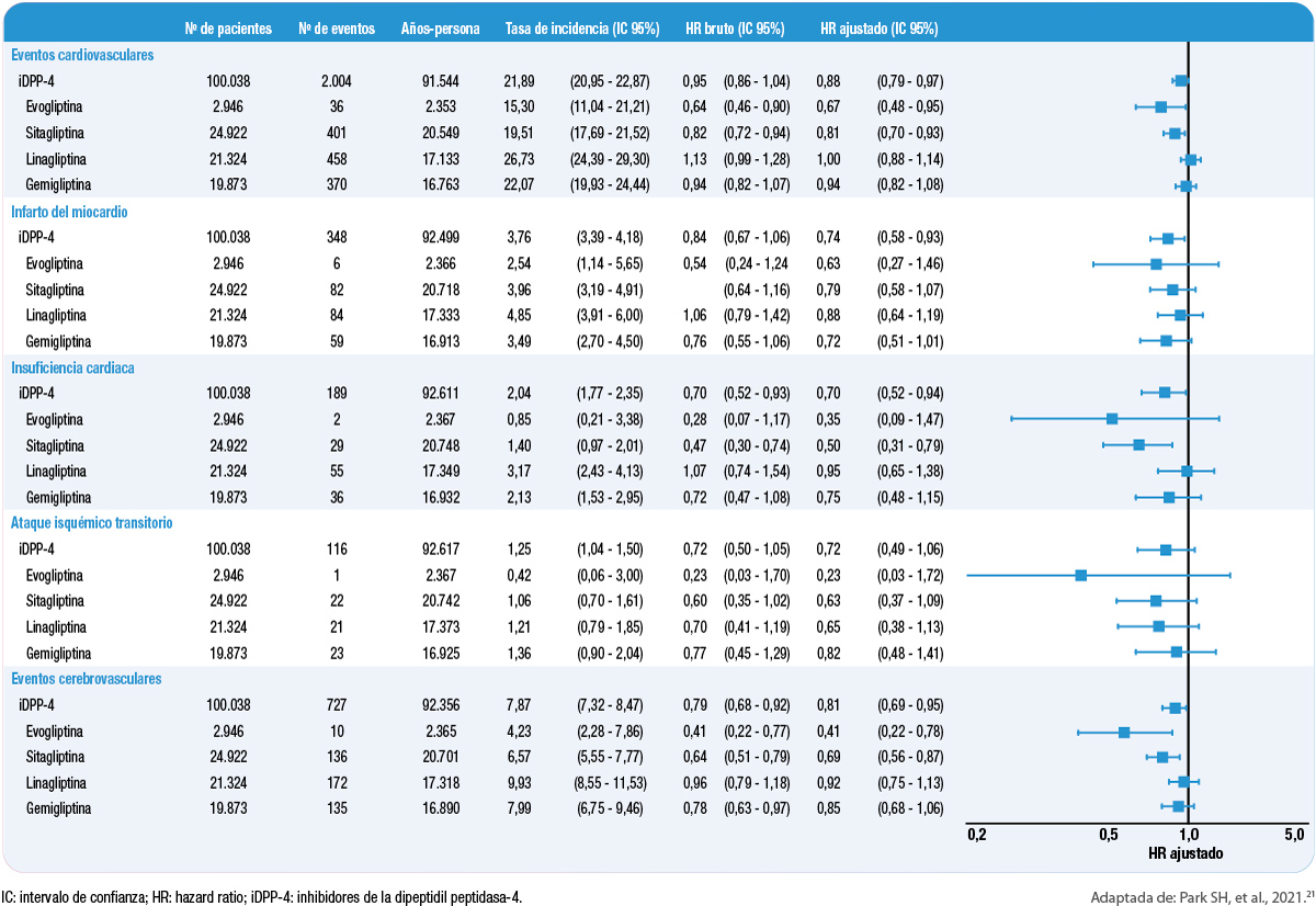 Evogliptina, un iDPP4, es un fármaco de potencia antihiperglicémica intermedia, con un efecto neutro sobre el peso, bajo riesgo de efectos secundarios y sin aumento de eventos adversos cardiovasculares mayores (MACE).9