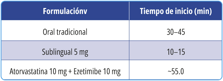 Tabla 1. Comparación del tiempo de inicio de acción entre formulaciones de zolpidem